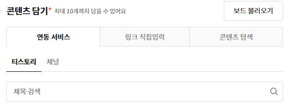 콘텐츠 담기 - 연동 서비스에서 직접 검색해서 담아도 되기는 합니다. 다만 모바일웹으로 연결되는 것도 상관 없을 때는요.